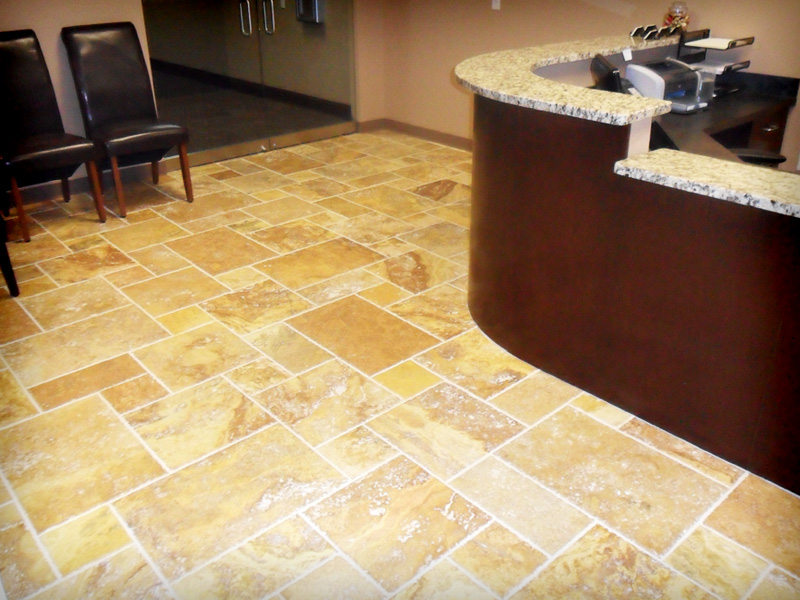 Comments: Multiple tile Versailles pattern. Stone sealed with stone enhancer.