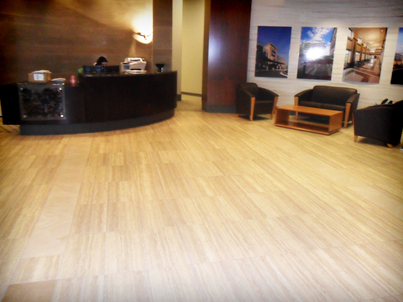 Comments: Lobby is a 12″X24″ porcelain with 12″X12″ limestone accent. Bathroom is a 16″X24″ porcelain.